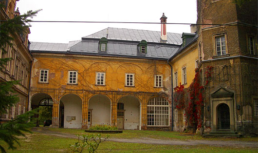The castle complex is surrounded by its own English garden of 74,259 square meters, decorated with 18th-century Baroque style sculptures, and with many trees that are hundreds of years old.